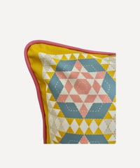 Double faced, printed on the front and back, with piping edge and a concealed zip.